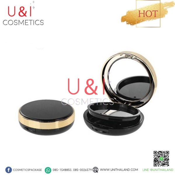 ตลับแป้งสีดำด้าน, แพคเกจตลับแป้ง package compact case ,ตลับแป้งสีดำขอบทอง